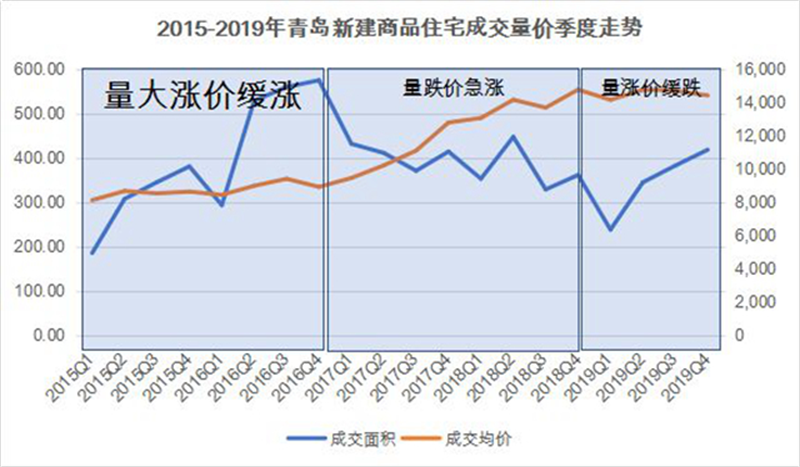 On the other hand, as the price of first hand house rising again, there was an obvious situation of tail-up” in Qingdao at the end of 2019. According to CRIC inspection, in the fourth quarter of 2019, the transaction volume of new commercial residential buildings in Qingdao was 4.1774 million square meters, up 9.34% from the previous quarter, while the transaction price of the whole city showed a slight decline in the same period, which showed that the price rising is already stimulating the release of purchasing power.