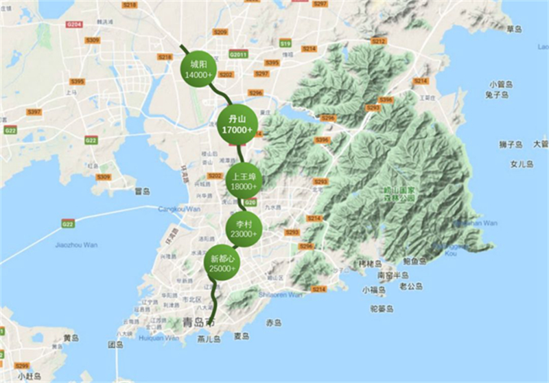 Further to north, the road ends at the center of Chengyang District, and currently there are Hisense Guanlang and Double City Centural Courtyard, with the price of 14000-16000 yuan/square meter;