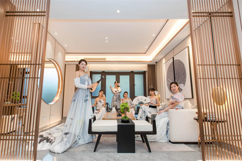 At the opening, the melodious instrumental performance attracts people to linger. The elegant classical music and traditional dance performances, the beautiful dancing postures, all become parts of the view, as if you traveled back to the ancient times. “Ceremony music” is an important part of the Chinese ceremony culture. Through the education of “rites” and “music”, the ancient ceremony music system is thereby formed. Sunkin ? Auspicious Mansion reproduced the grand view of “ceremony music”, the traditional dances of Guzheng, Pipa, Sheng, Xiao, and Guqin. The perfect reproduction in nature started a journey of Chinese aesthetic appreciation through the most poetic way.