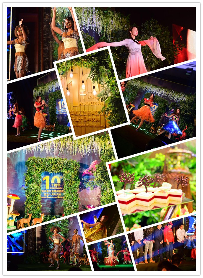 慶典活動當晚“叢林”主題的裝飾及茶歇給人耳目一新的視聽感受,象征著酒店綠色健康、天然原生的美食以及熱情本真的服務團隊。而晚宴則以“感恩、懷舊、展望”三個篇章呈現(xiàn),十年的陪伴與相守,十年的收獲與成長,所有情結都匯聚在精心錄制的視頻以及傾情打造的盛宴和演出當中。