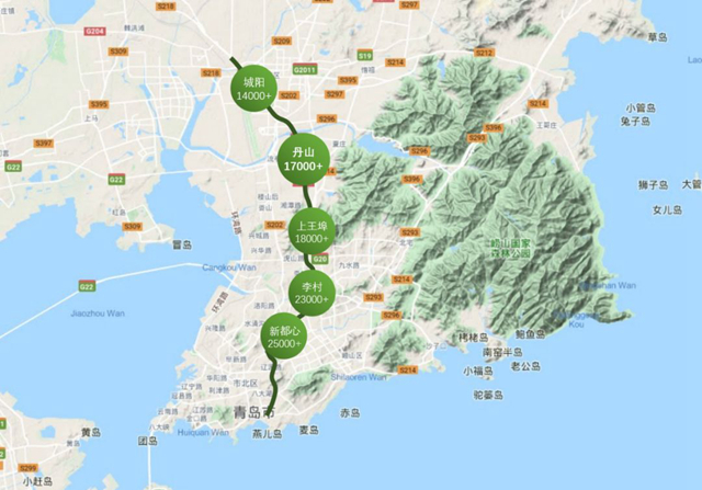 如果是在市南、市北工作,從通勤成本、房價承受力來綜合考量,向北能接受的最大范圍基本落在丹山這個區域,從丹山直線向南15公里范圍內,可覆蓋新都心、CBD、金家嶺,17公里可到五四廣場,自駕時間能控制在1個小時;如果是坐地鐵兼走高速的話,時間成本還可以進一步壓縮。已公示的地鐵三期建設規劃,15號線一期初步規劃沿黑龍江路鋪設,未來南北的通勤時間還會大幅縮短。
