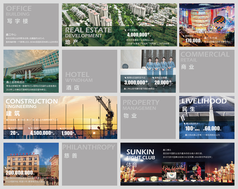 鑫江集團成立于1995年,以助力城市綜合發展、提升高質量美好生活品質為企業己任,是一家集地產、寫字樓、商業、酒店、物業、建筑、體育、民生、慈善于一體的多元化集團企業,2018年企業銷售值突破101億元,納稅7.03億元。鑫江集團堅持高質量發展,勇于創新、整合業態資源,深度參與城市發展,為城市綜合發展賦能,不斷探索市民對美好生活的追求,全面筑就城市發展綜合運營商的新格局,與島城市民共建美好鑫生活。